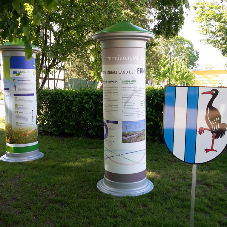 Die easymedia GmbH aus Magdeburg war an der Gestaltung und Herstellung von 6 mobilen Litfaßsäulen für den Gemeinschaftsstand der Landesenergieagentur Sachsen-Anhalt GmbH, der Stadtwerke Burg und des Ministeriums für Umwelt, Landwirtschaft und Energie des Landes Sachsen-Anhalt beteiligt. Dabei konnten sich alle Besucher über die Themen „Erneuerbare Energien“, „Solar- und Landstrom“ sowie „Klimaschutz und Klimawandel“, visualisiert auf diesen Litfaßsäulen, informieren.