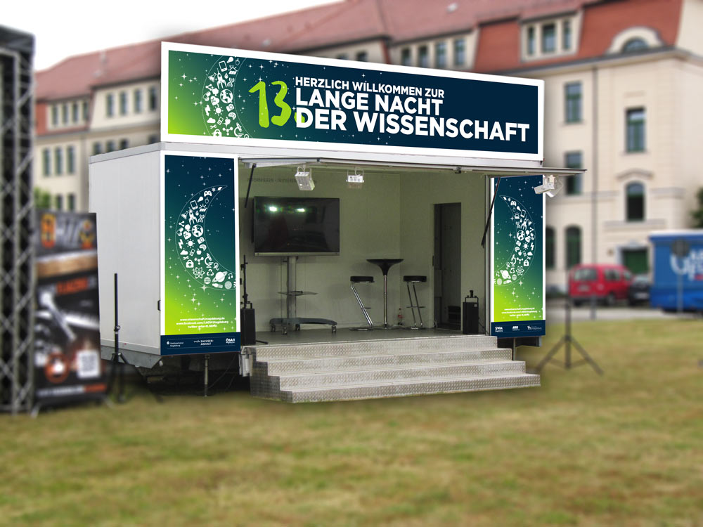 Nun stellte easymedia für die Lange Nacht der Wissenschaft am vergangenen Wochenende das Infomobil inkl. bedruckter Blendenwerbung zur Verfügung. Das seit 2006 bestehende Gemeinschaftsprojekt der Landeshauptstadt Magdeburg und der wissenschaftlichen Einrichtungen der Stadt gaben den Besuchern erneut die Möglichkeit, spannende und faszinierende Einblicke in die Welt der Wissenschaft und Forschung zu erhalten.