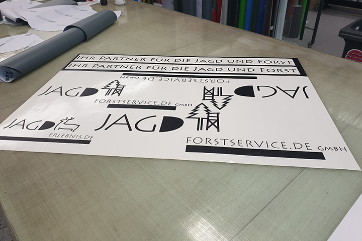 - Noch auf Folie: Schrift und Logo. Diese werden auf den PKW übertragen.